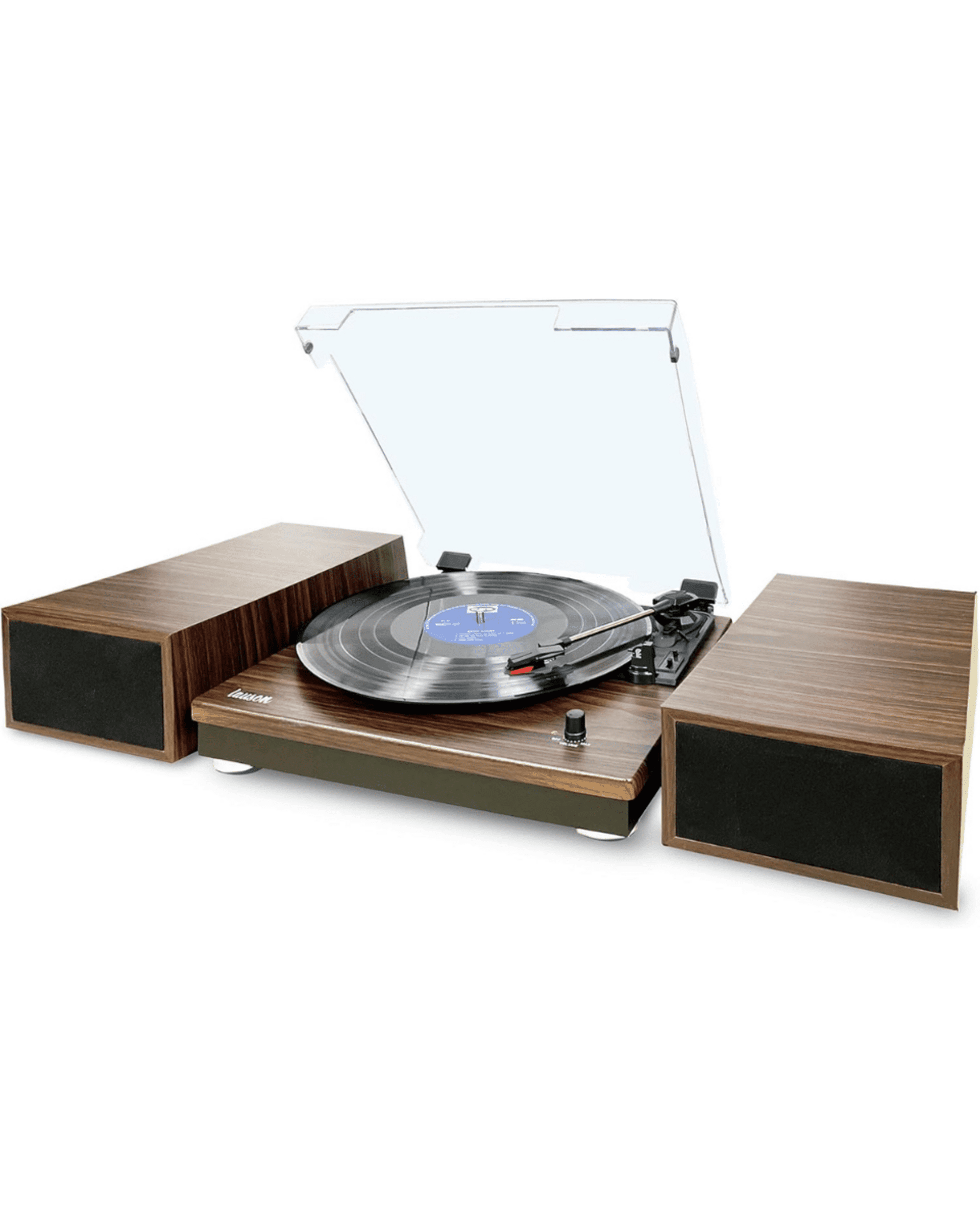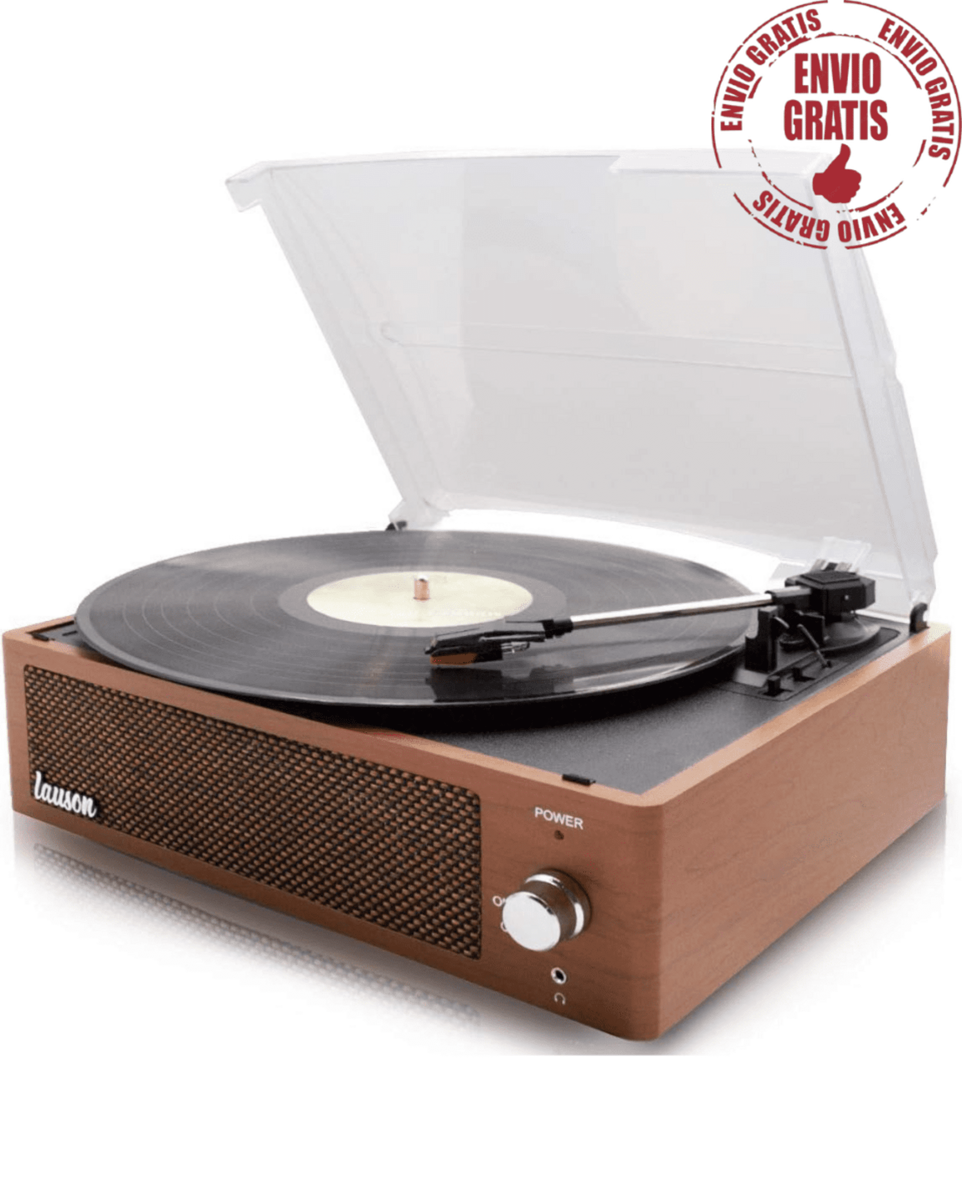 TOCADISCOS CON ALTAVOCES DOBLE Y PC LINK ENCODING (Marrón Claro) Nuevo A Estrena